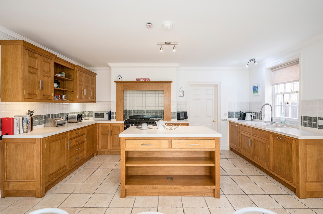 Kitchen and Dining area: fully fitted and well equipped with a modern range style cooker, microwave, larder fridge/ freezer, cafetiere, additional half height fridge and dishwasher. A large dining table and chairs positioned in the east facing bay window