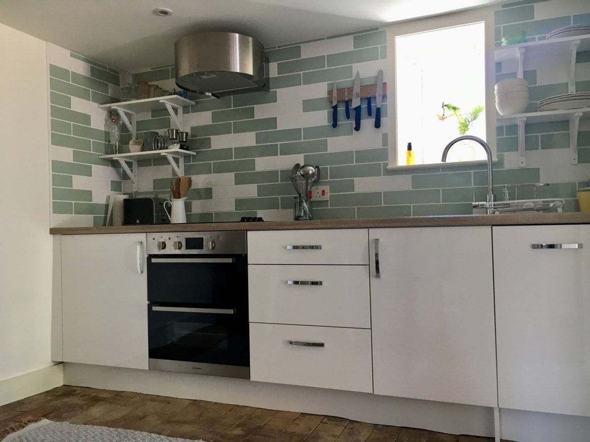 The well equipped kitchen and lobby/utility area leads through to the cosy sitting room, complete with log burner, and a sumptuous sofa, which is the original part of the house. A door then leads through to two large light, bright and airy rooms, both with vaulted ceilings; the large bathroom, with an indulgent roll top slipper bath, separate corner shower, and a large window, leading on to the bedroom, with a beautiful kingsize bed, a large wardrobe, and french doors which open out into the garden.
