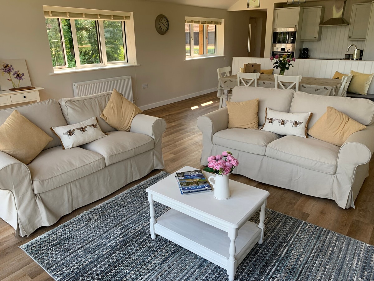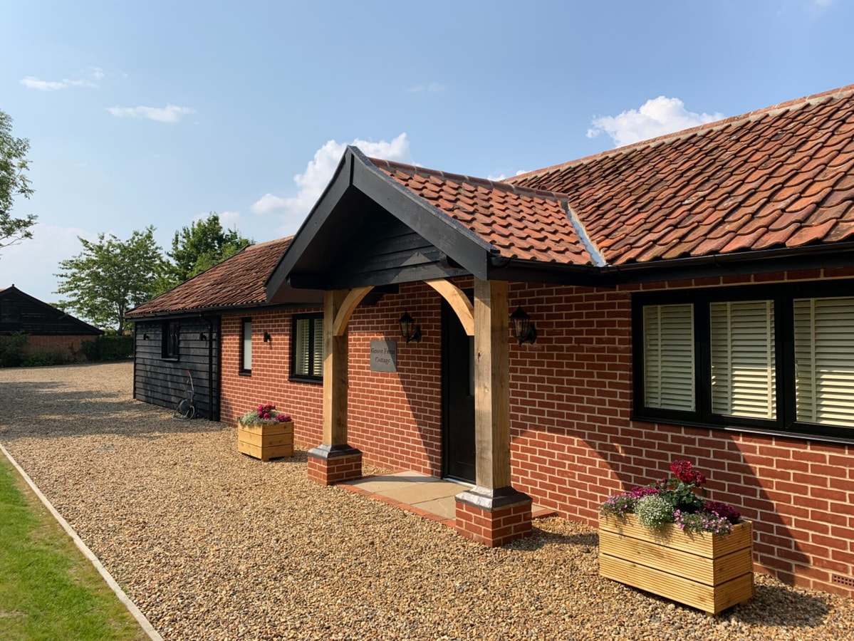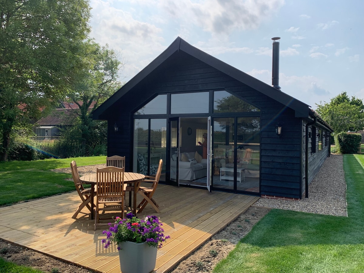Built in 2021, Grove Farm Cottage has been superbly designed and furnished to a very high specification. In the grounds of a listed, moated farmhouse, this superb cottage provides accommodation for 4 guests. The spacious open plan sitting room has patio doors which open out to a private patio with a fire pit and barbecue. The garden surrounds the property, and leads to the pond, complete with jetty, where you can sit, relax, and enjoy the peace and tranquility of this beautiful location.